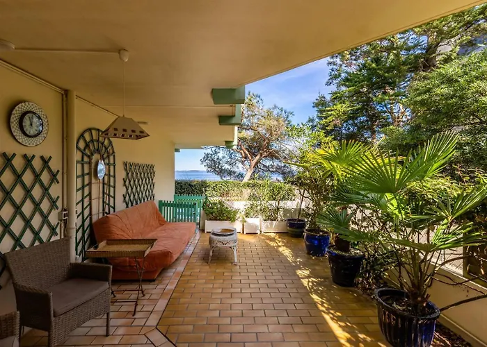 The beachfront Appartement Emeraude Arcachon is located only 1.3 km from the Parc Mauresque and merely a 14-minute walk from the La Chapelle Jetty. This apartment features a terrace, providing guests with seaside views of the sea.